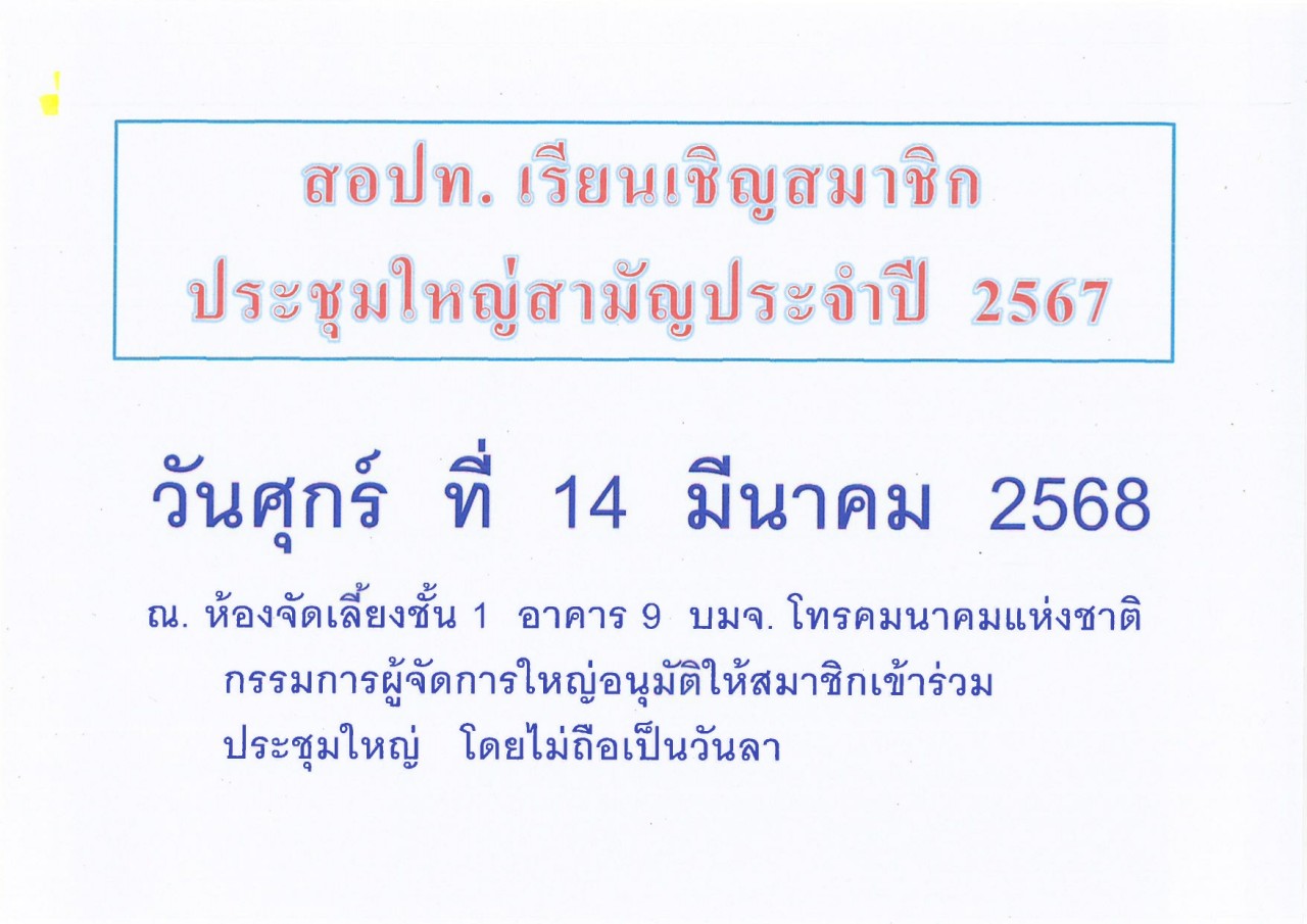 ขอเชิญประชุมใหญ่สามัญ ประจำปี 2567 (14 มี.ค.68)